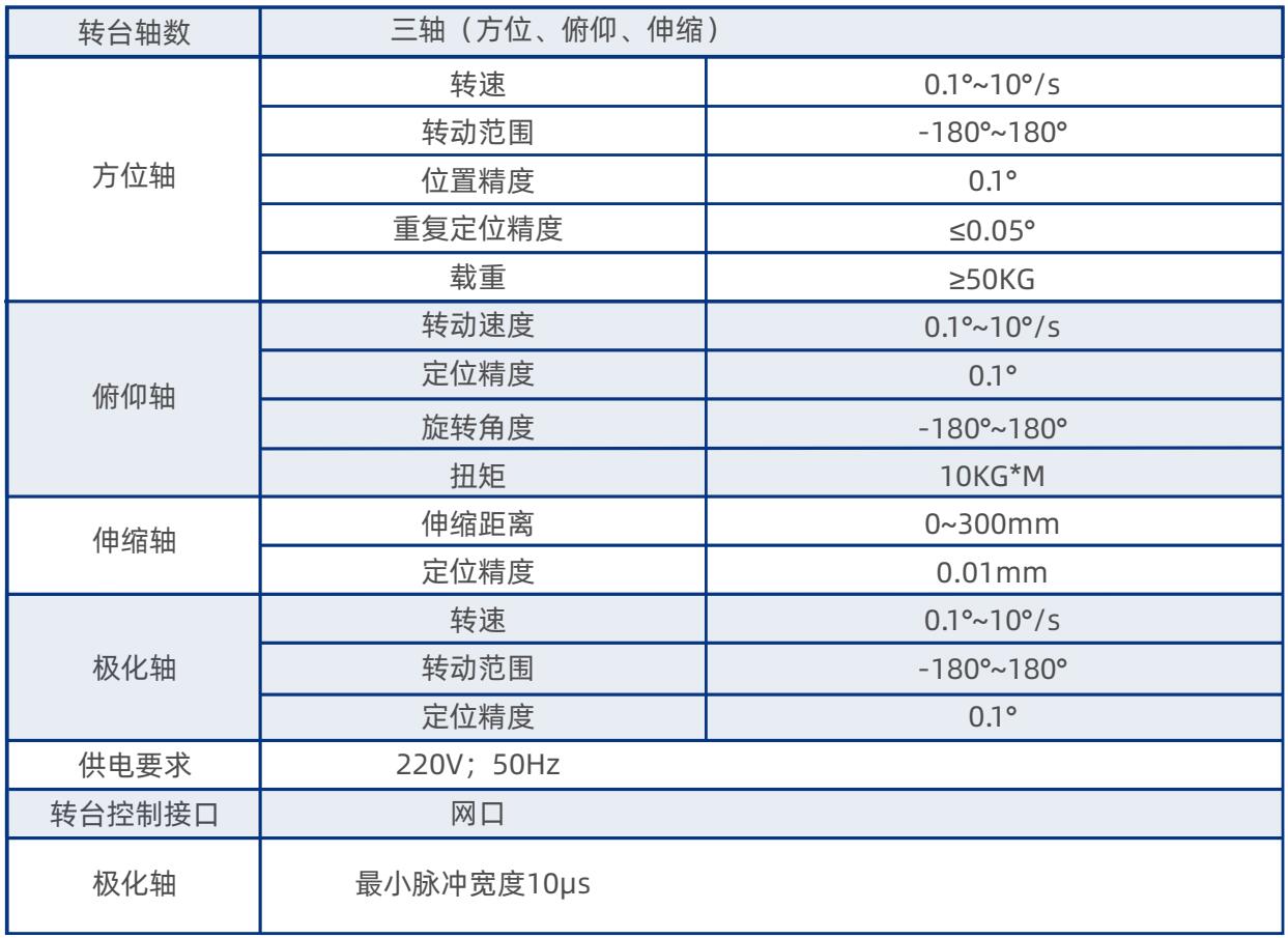 产品介绍:本产品为高精度球面转台,共包含:方位、俯仰、伸缩、极化共五个调节自由度。可广泛用于球面扫描系统。
